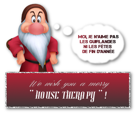 Vous vous demandez ce qu'est une 'house therapy', n'est-ce pas ? Le principe est simple : une thérapie de groupe intra-maison ! Vous pouvez tout confesser, ici nous sommes entre amis et personne ne vous jugera. Le thème de cette séance est, par quelque hasard de la vie, celui de Noël. N'avez-vous donc jamais vécu de Noël traumatisant ? Encore une dinde qui glousse à votre gauche (la cuisson de la volaille n'a jamais été le fort de votre oncle), un cousin qui fait une crise de foi (croire en n'importe quoi peut conduire à un ras-le-bol difficile gérer), une sœur qui a cru qu'il fallait éteindre l'unique source de chaleur – la cheminée – de votre maison pendant la nuit pour que Papa Noël ne se brûle pas en venant (pourquoi êtes-vous si fragile pour ce qui est des variations de températures ? Vous n'aviez qu'à vous couvrir, aussi !) ?